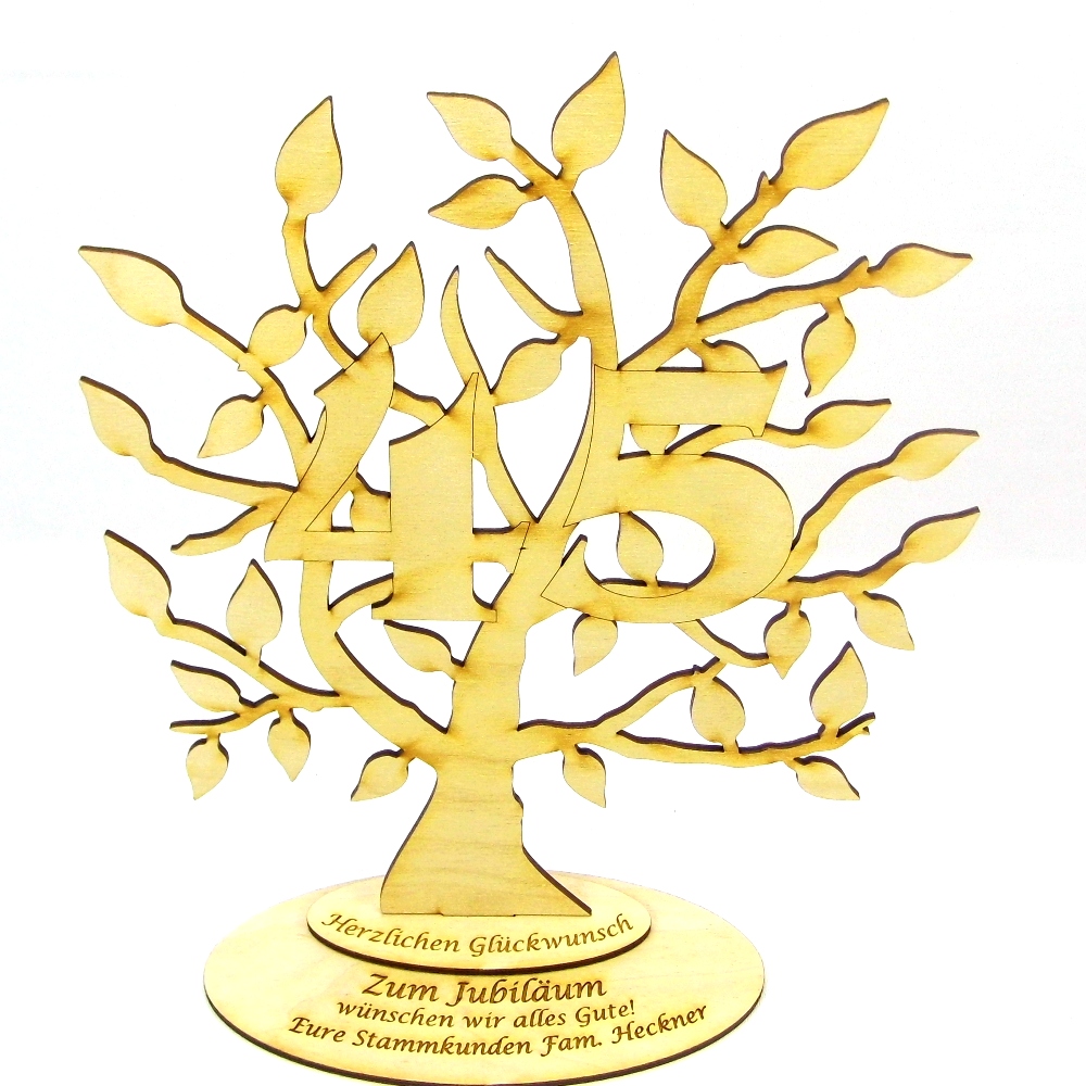 Lebensbaum aus Holz 28cm Hoch Geburtstagsbaum mit Zahl 45 und Ihrer Gravur, Personalisiert