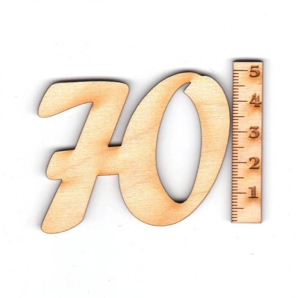 Geburtstagszahl "70" ist aus 3 mm starkem Birkenholz mit einer Höhe von 50 mm und einer Breite von 64 mm inklusive Füße zum hinstellen.