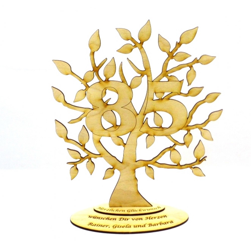 Lebensbaum aus Holz 28cm Hoch Geburtstagsbaum mit Zahl 85 und Ihrer Gravur