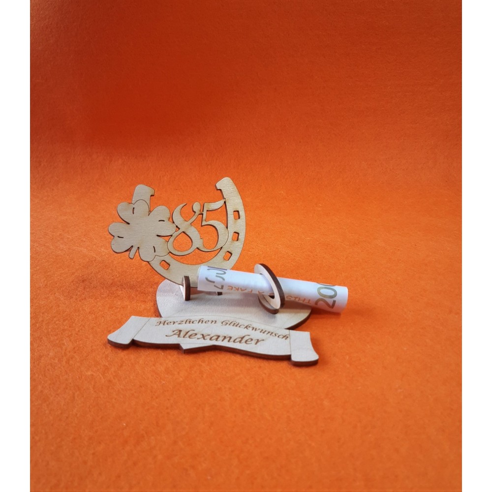 Geldgeschenk 85. Geburtstag Kleeblatt 11cm oder 16 cm Personalisiert