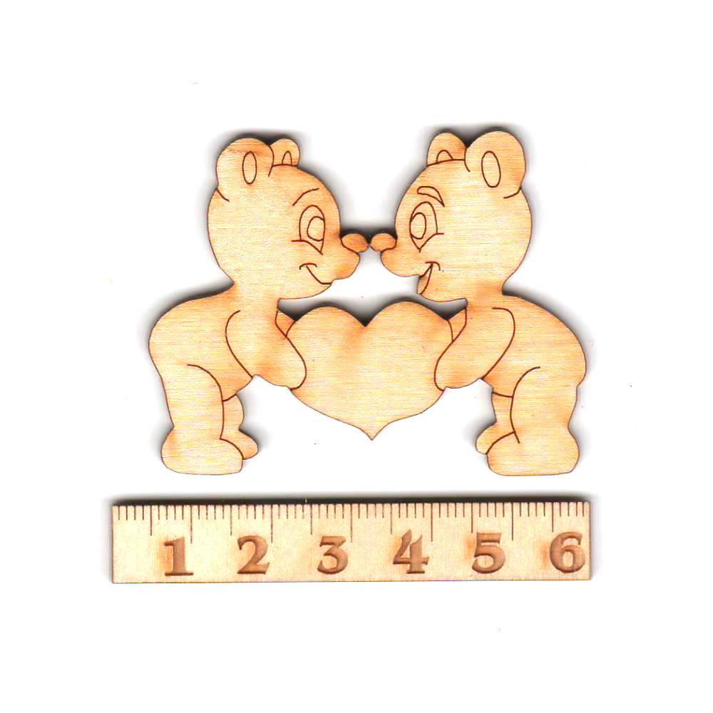 2 Bären mit einem gravierten Herz aus 3mm Birkenholz in einer Höhe von 156 mm und Breite von 2..