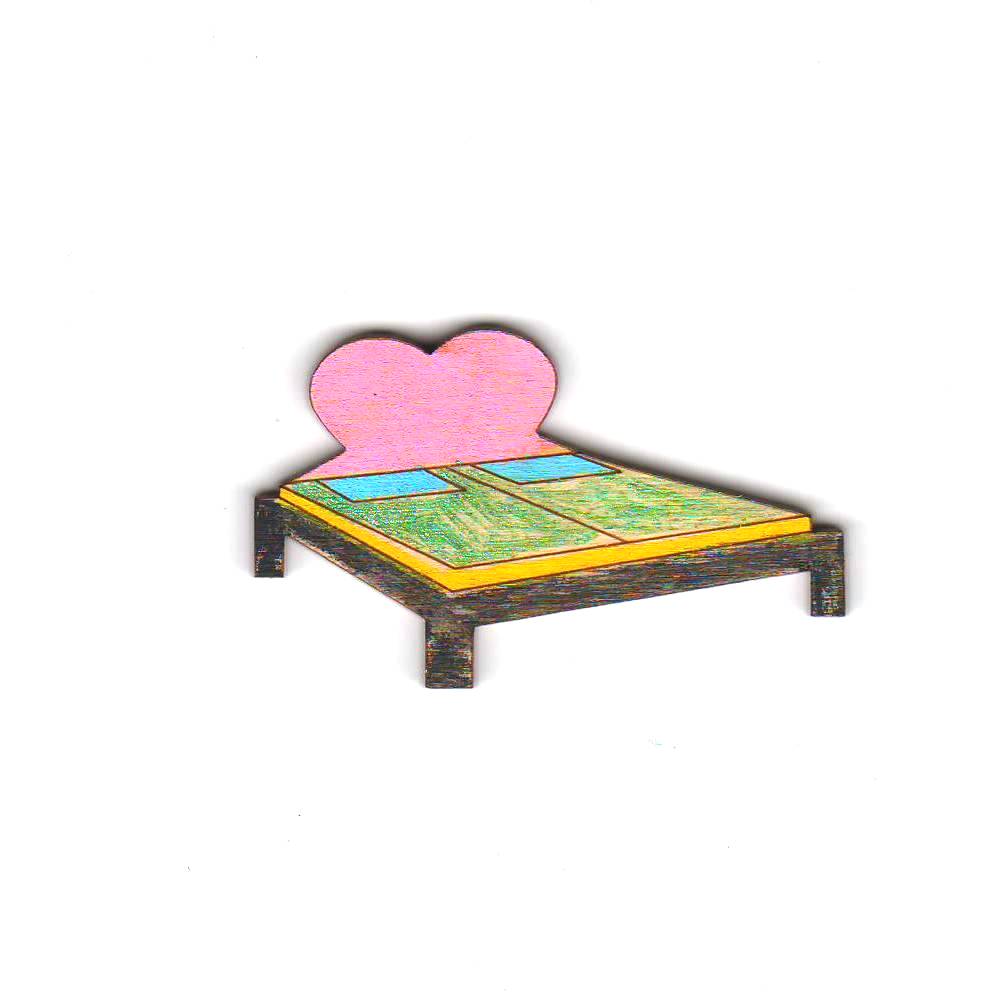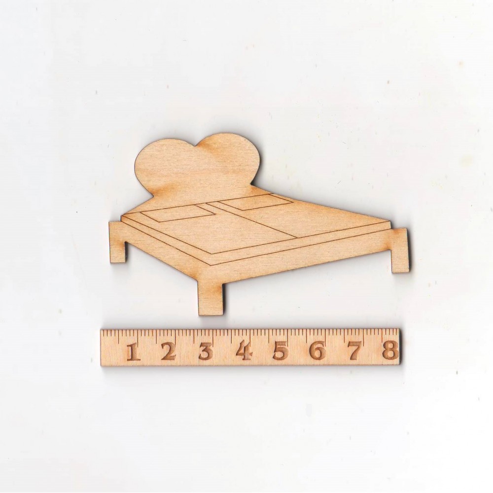 Doppelbett mit Herz aus 3mm Sperrholz, Breite 80mm, Höhe 40mm Zeichnung einseitig
