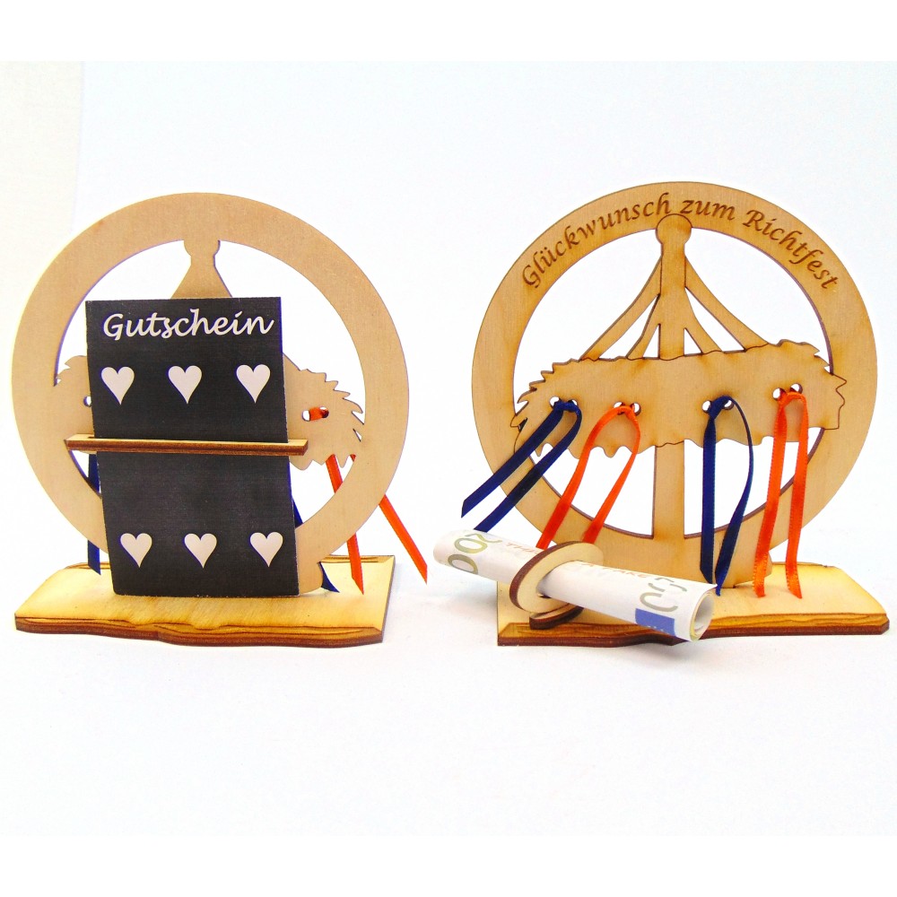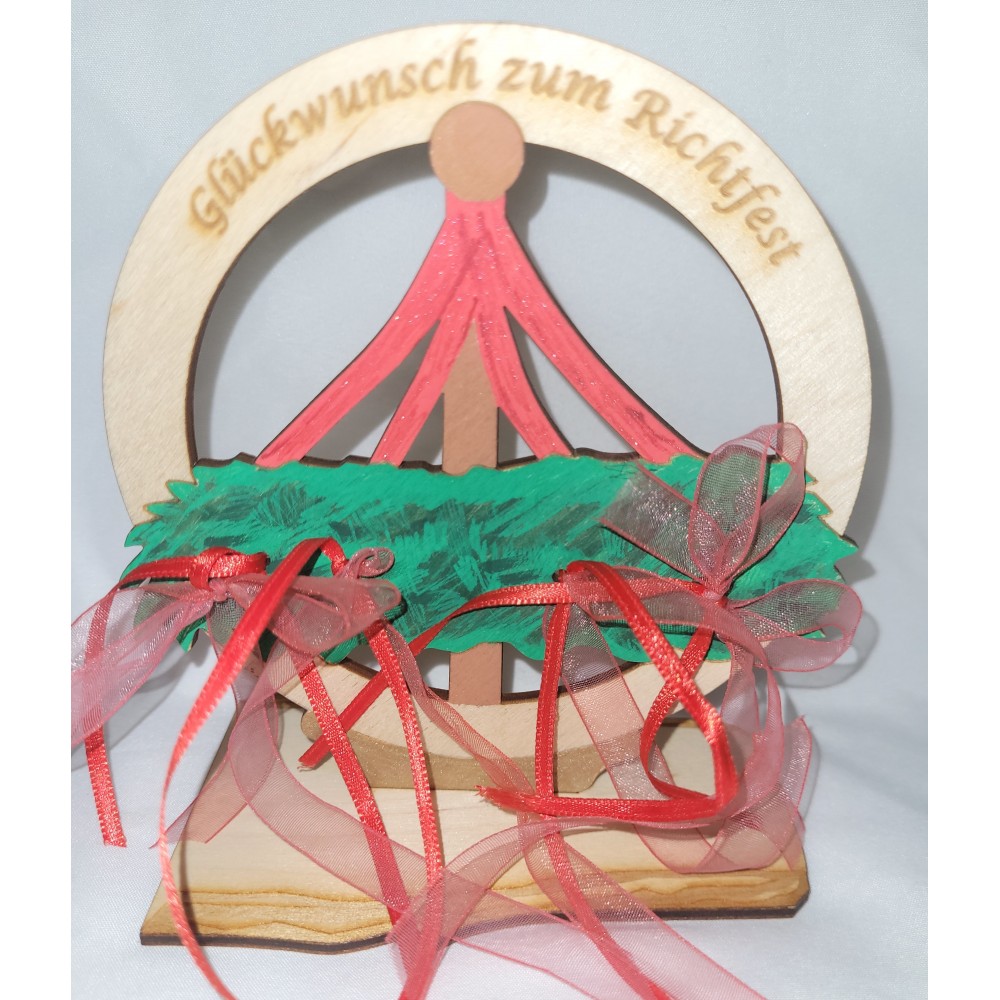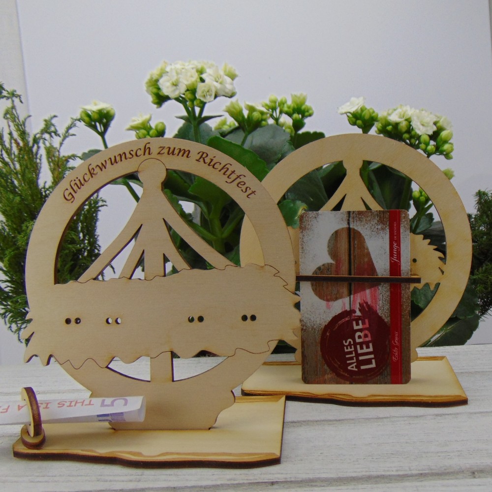 Geldgeschenk zum Richtfest für die Bauherrn.Das Mitbringsel besteht aus der Grundplatte 14 cm x 8 cm..