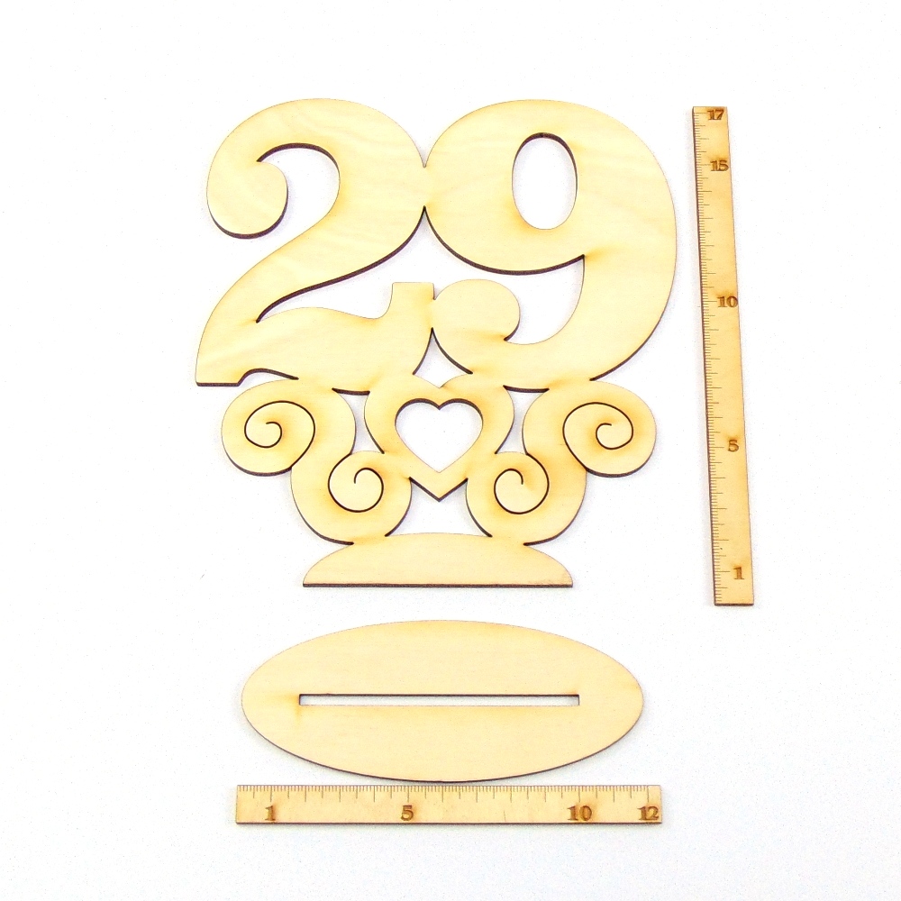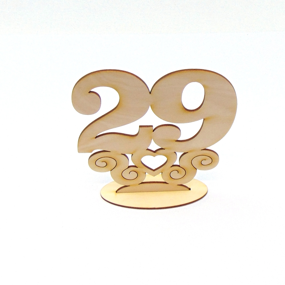 Die Tischnummer "29" ist aus 3 mm dickem Birkenholz einer Höhe von 170mm und einer Breite von 138mm