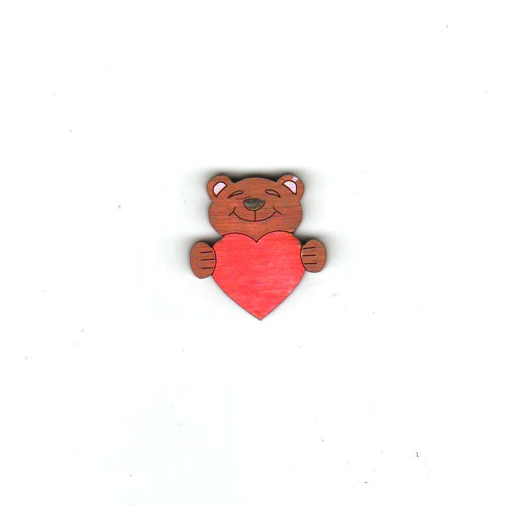 Holzbär mit Her z in den Händen aus 3 mm Sperrholz, Höhe 25 mm, Breite 22 mm, Musterung einseitig.
