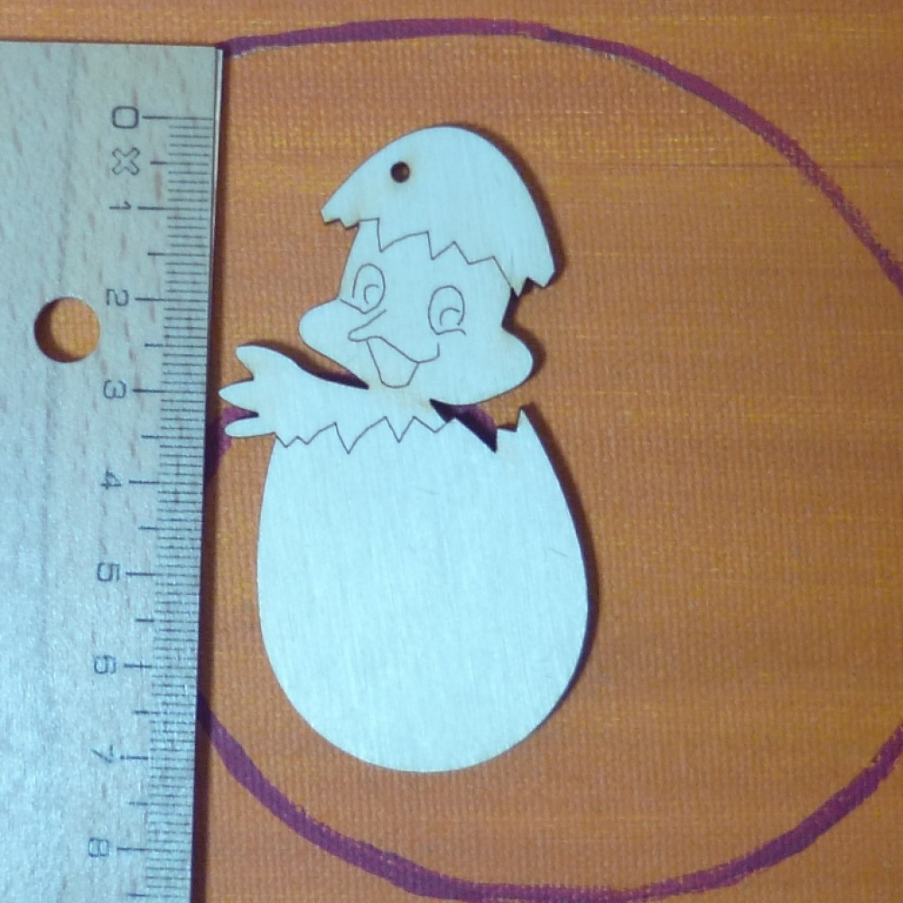 Diese Küken im Ei aus 3mm Birkensperrholz, Höhe 70mm und Breite 38mm.