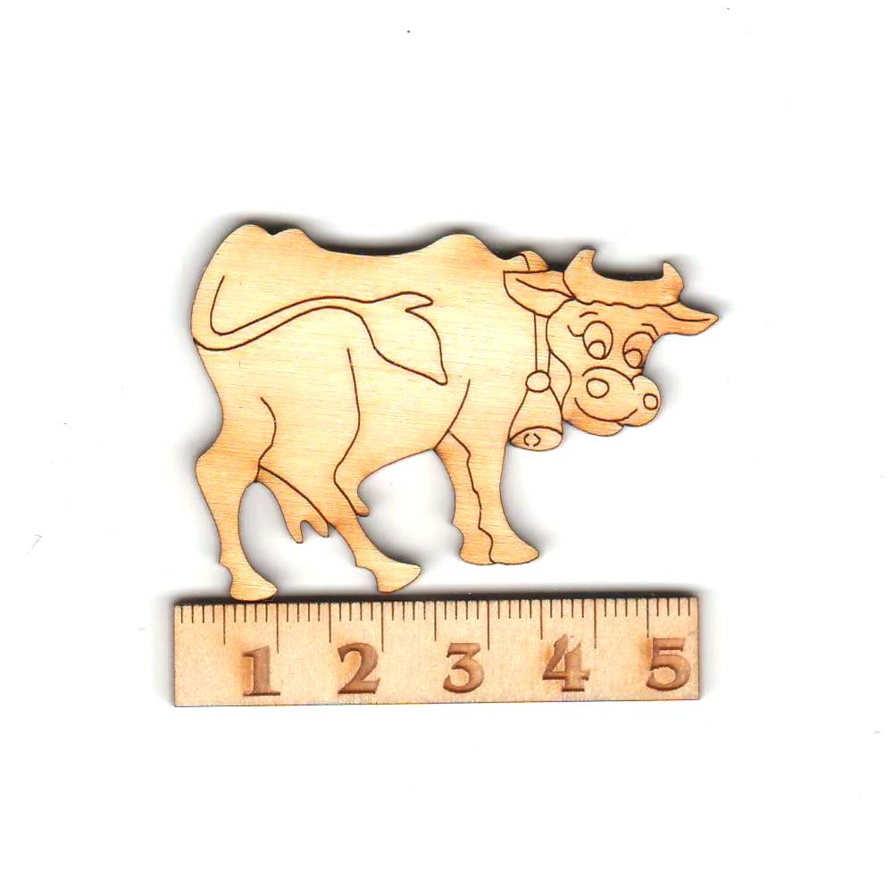 Holzkuh aus 3mm Birkenholz, Breite 50mm, Zeichnung einseitig mit einem Loch für Lederbänder oder größere Metallringe