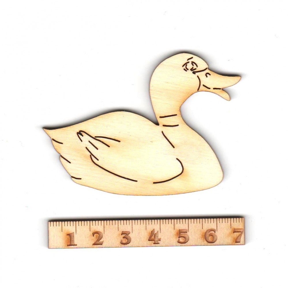 Holzente aus 3mm Furnierholz, Höhe 51mm, Breite 70mm, Zeichnung beidseitig.