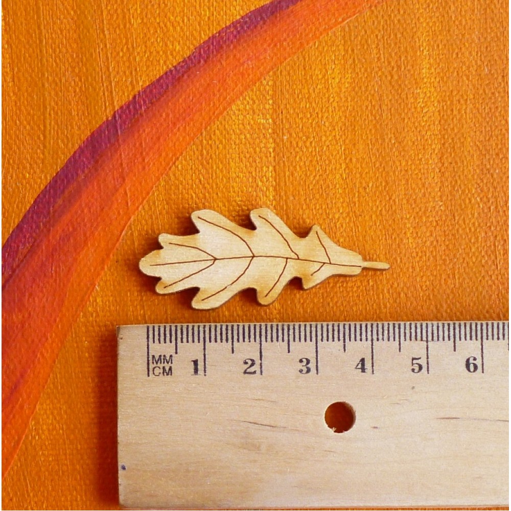 Holzfigur Eichenblatt aus 3mm Sperrholz, Höhe 45mm, Breite 19mm Zeichnung einseitig