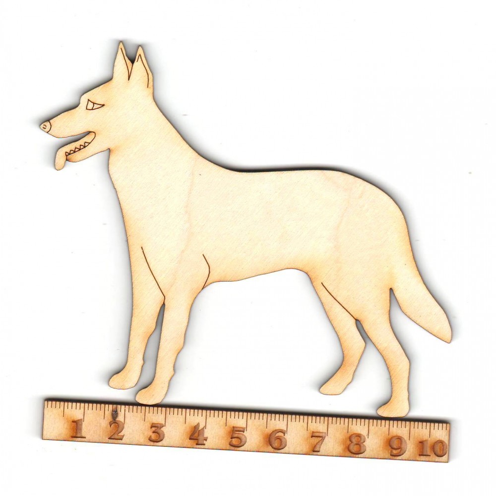 Sitzender großer Hund aus 3mm Birkenholz, Höhe 70mm, Breits 43mm Zeichnung einseitig..