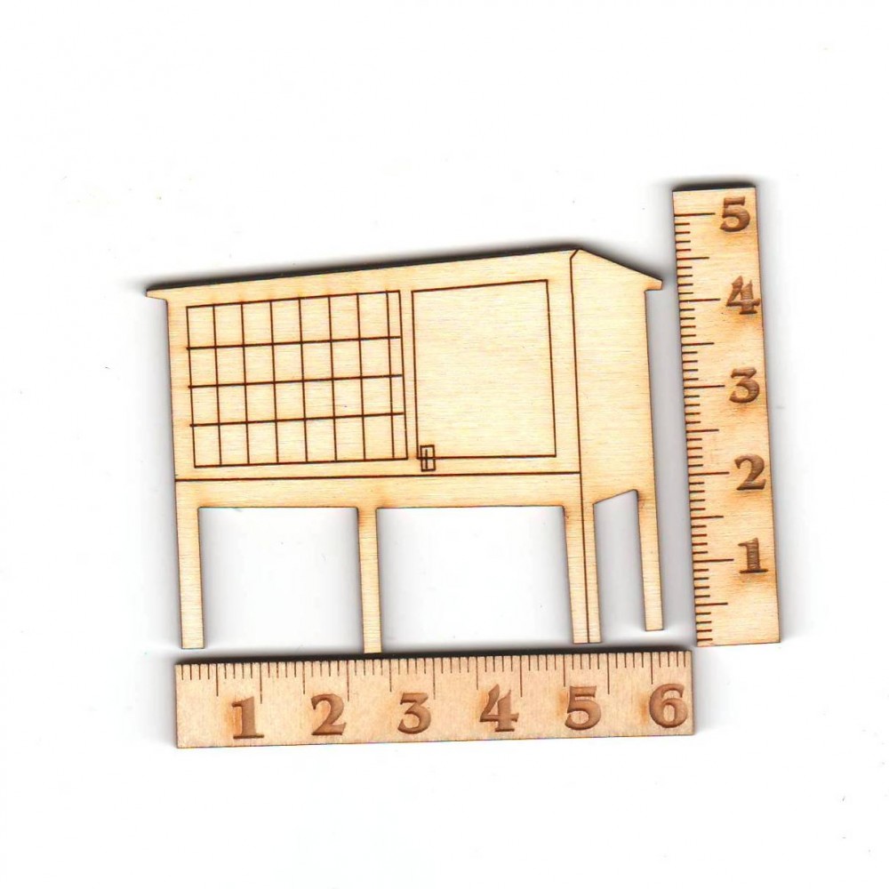 Der Hasenstall ist aus 3 mm Birkenspeerholz, 45 mm Höhe und 60 mm Breite.