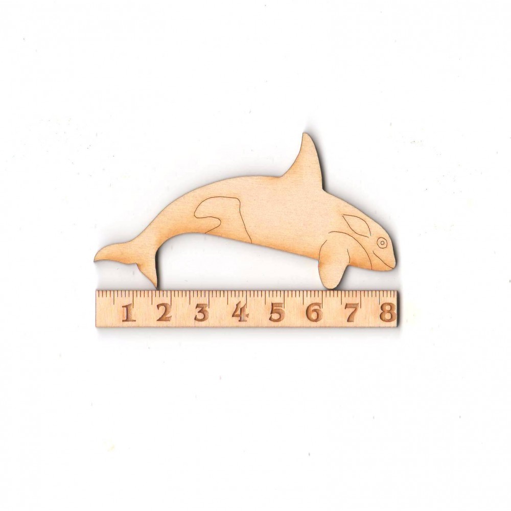 Orca Holz aus 3 mm dickem Birkenholz, Höhe 44 mm, Länge 80 mm, Musterung einseitig.