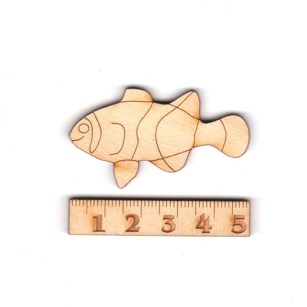 Clownfisch Holz aus 3 mm Birkenholz, Höhe 35 mm, Länge 50 mm, Musterung einseitig.
