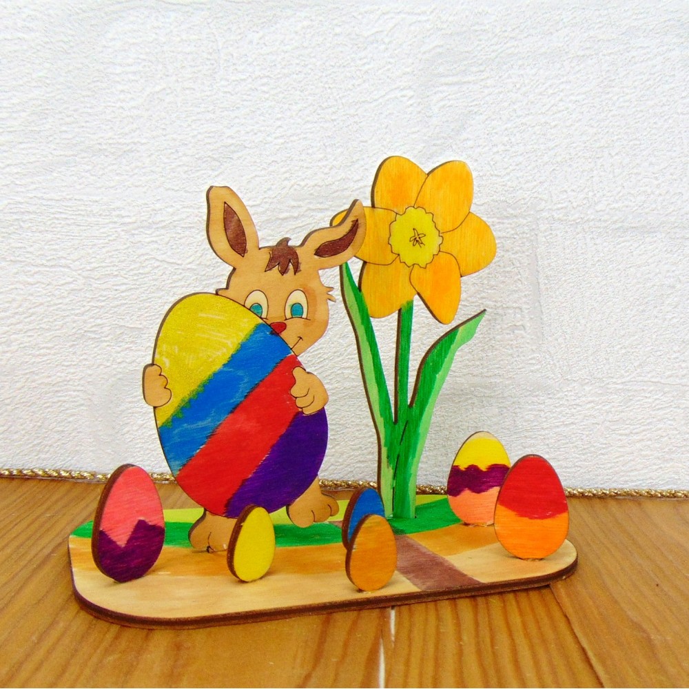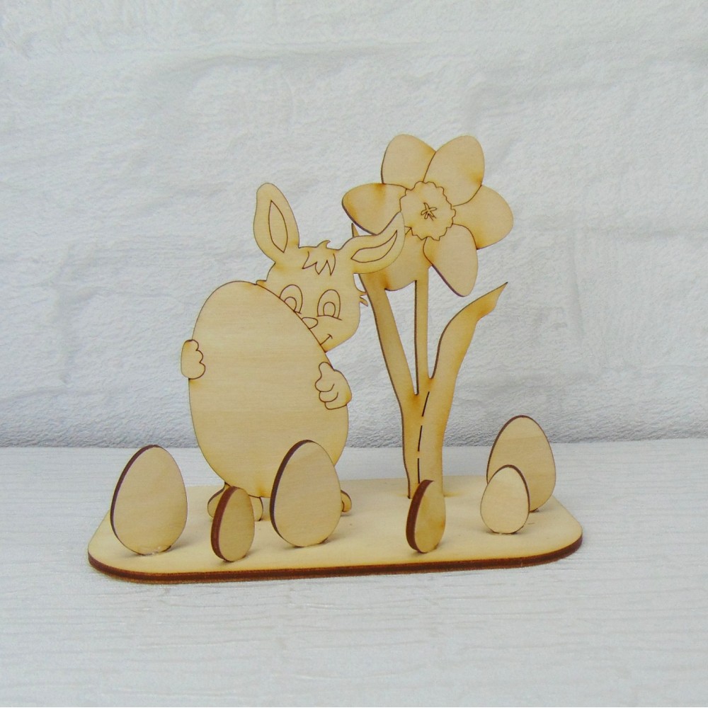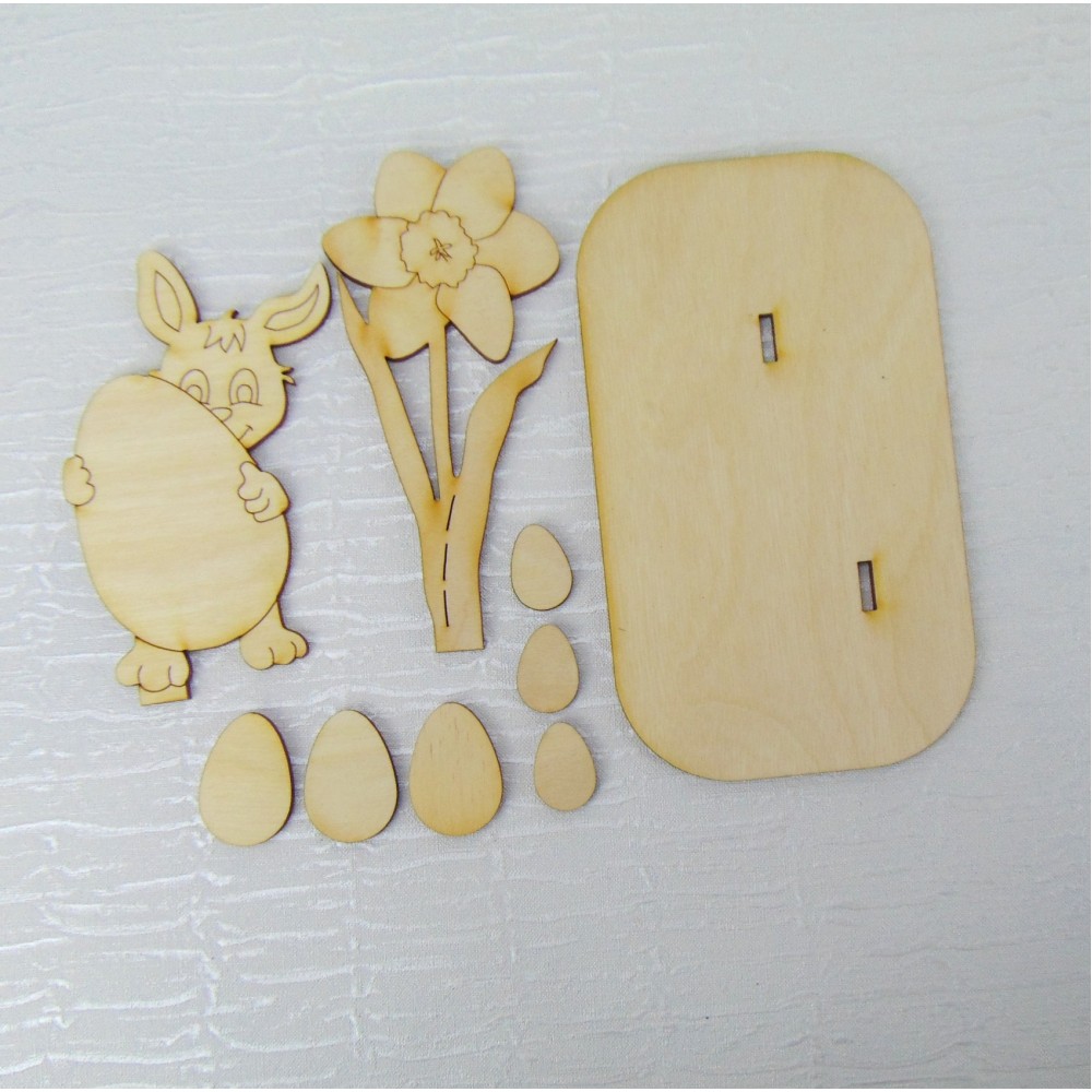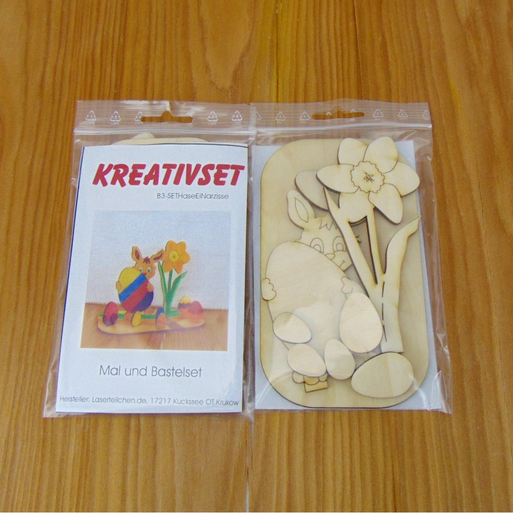 Das 9 teilige Bastelset besteht aus einem großen Ei, in das ein süßer Hase gelasert wurde, 6 ..