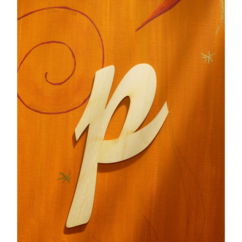Schreibschrift - p aus 3mm Holz Höhe 185mm Breite 120mm.