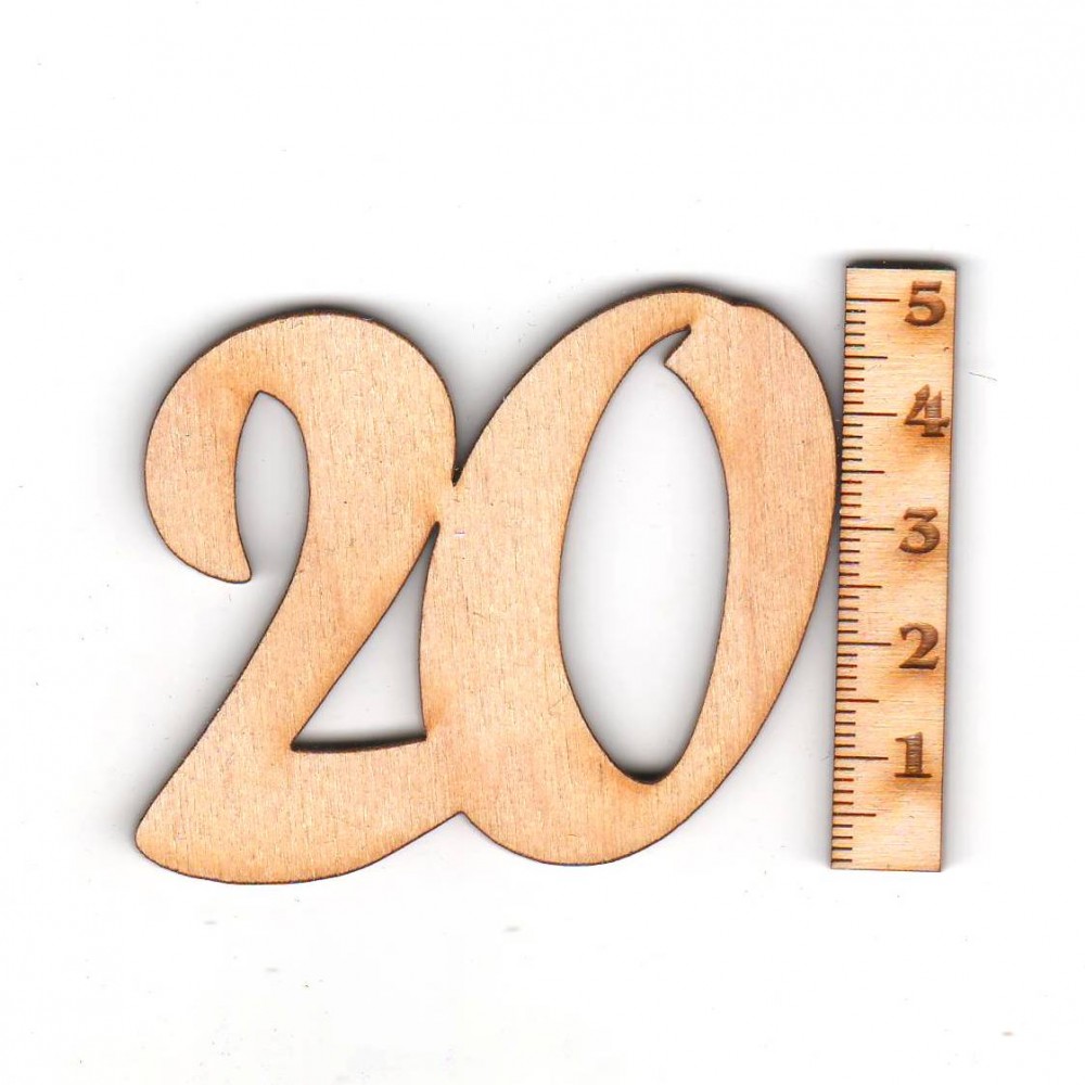 Geburtstagszahl "20" aus 3mm Birkenholz hat eine Höhe von 21 mm und eine Breite von 24 mm.Die Zahl 2..