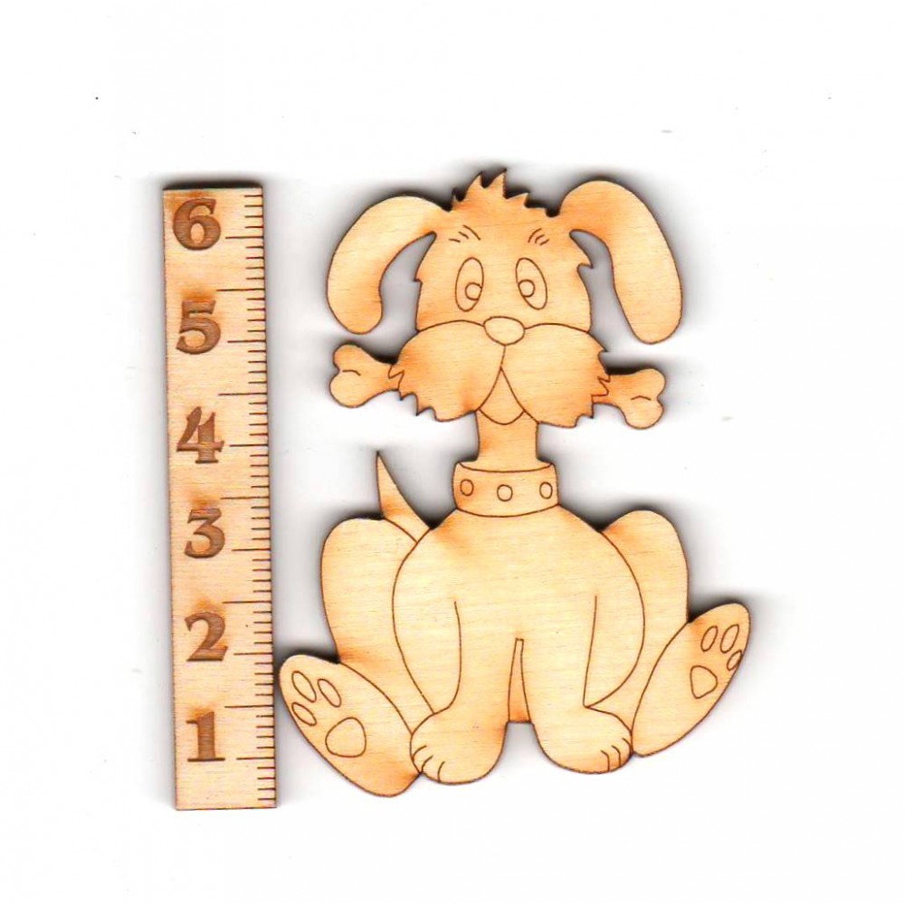 Hund mit Knochen sitzend 60mm aus Holz