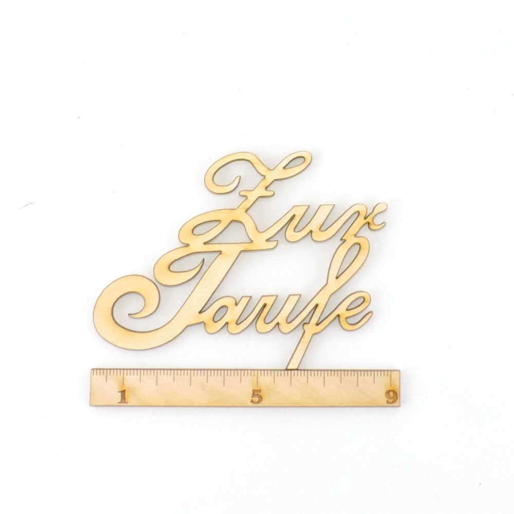 Feiner Schriftzug "Zur Taufe" aus Holz in 7 cm und 9 cm für Karten und Einladungen