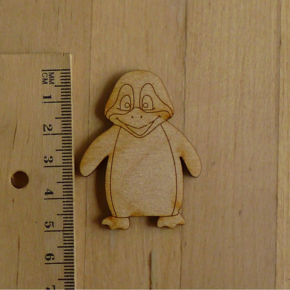 Pinguin aus 3 mm dickem Birkenholz, Höhe 30 mm, Breite 23 mm, Zeichnung einseitig. Es gibt dre..