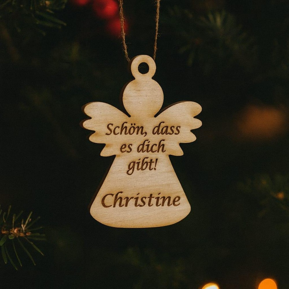Bei ohne Gravur kommt der Engel mit der Aufschrift "Schön, dass es dich gibt"Mit Gravur können Sie den Text bestimmen.