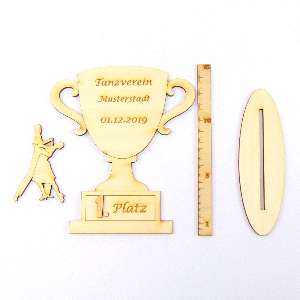 Pokal für Vereine aus Holz mit Nummern und Tanzpaar sowie Ihre Gravur Personalisiert