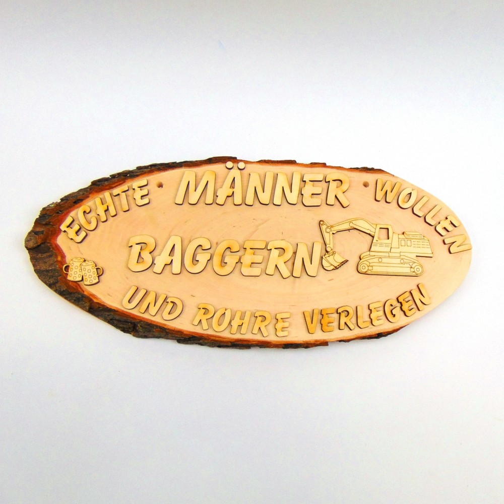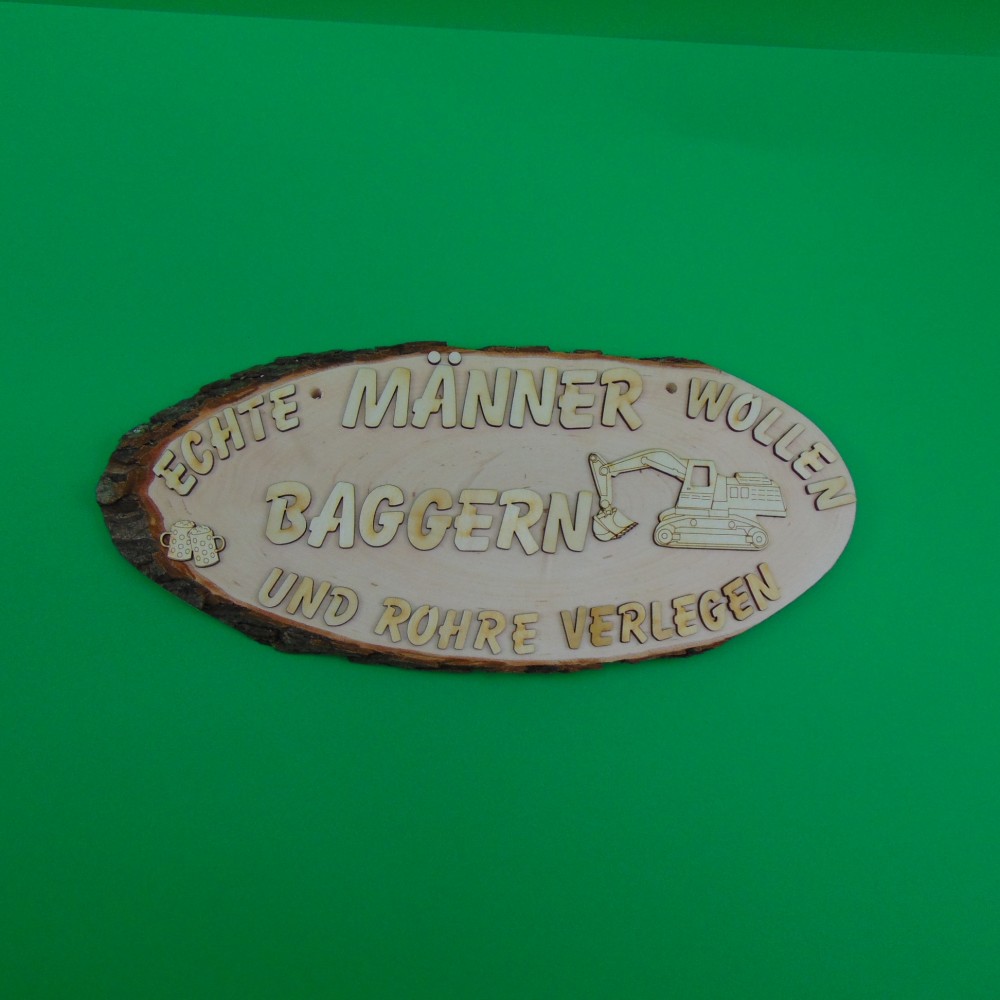 Baumscheibe naturbelassen Spruchtafel Echte Männer wollen Baggern und Rohre verlegen