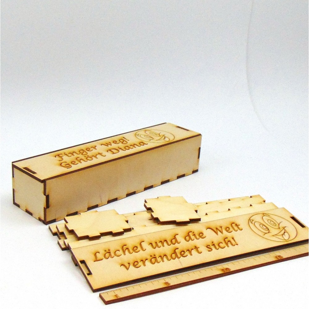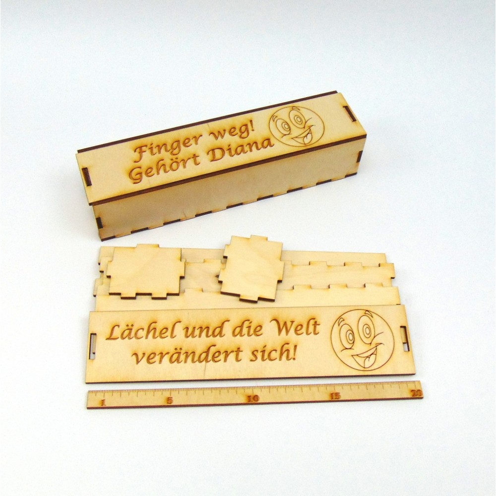 Das Kästchen besteht aus 3 mm Birkenholz. Die Höhe beträgt 4,6 cm und die Breite 9,5 cm.Verschenken ..