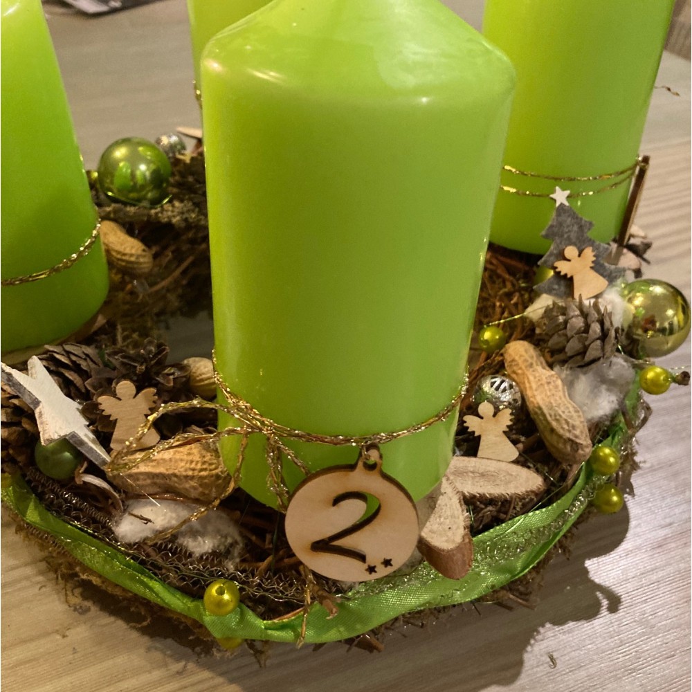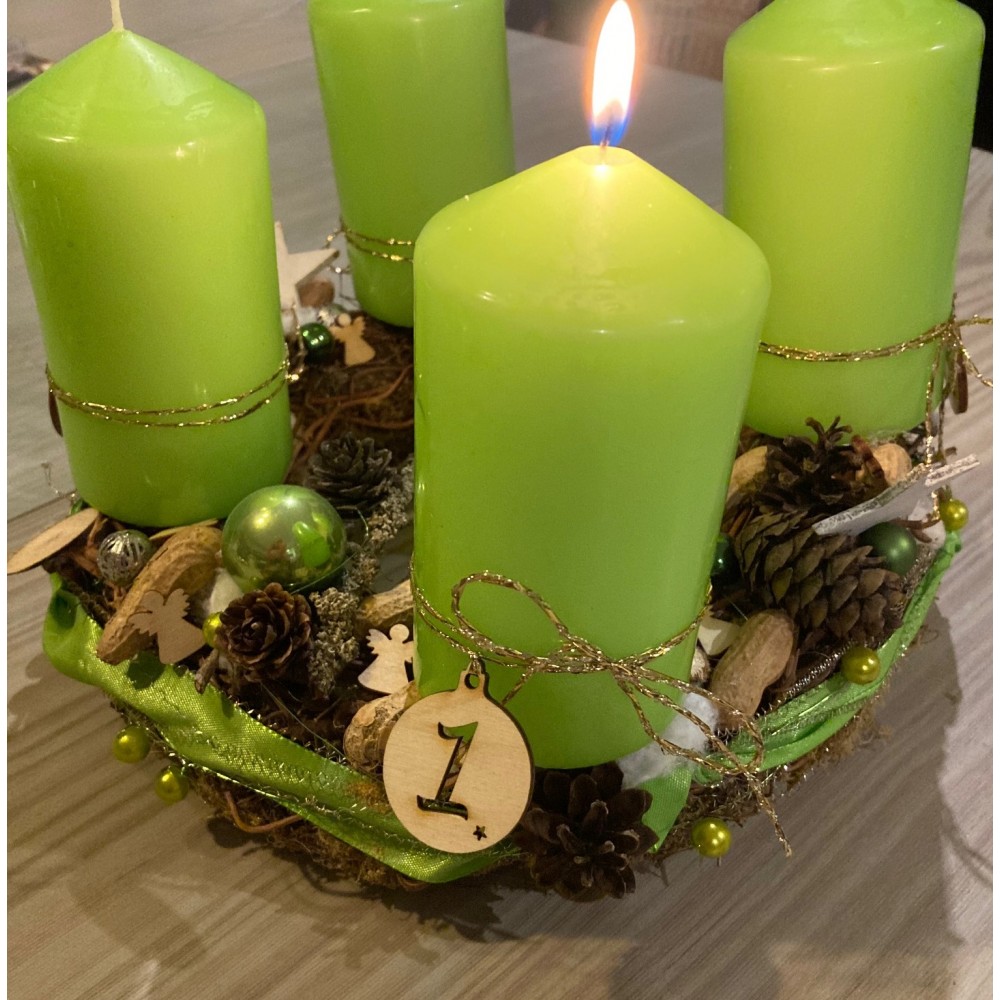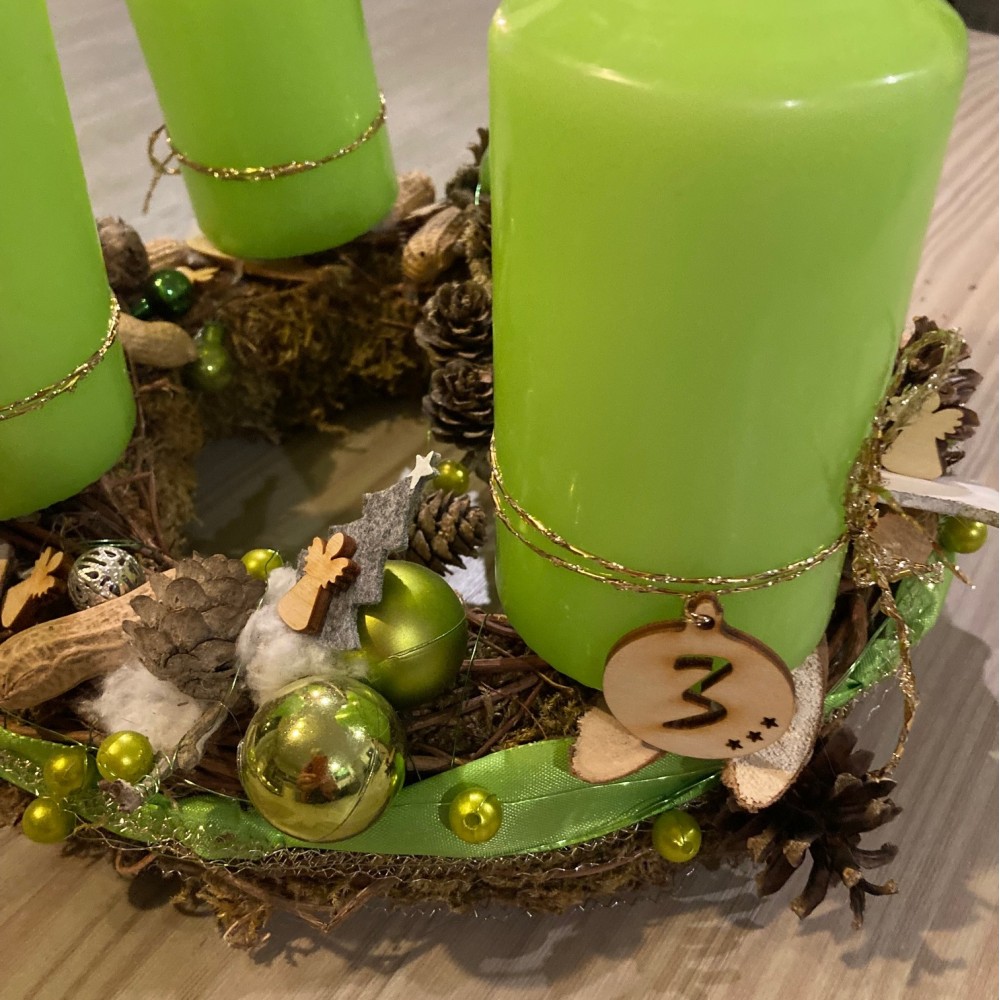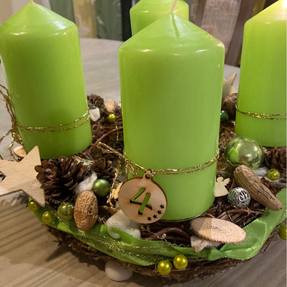 Die 4 Adventzahlen sind 4 cm groß mit einem 3 mm großem Loch zum aufhängen.