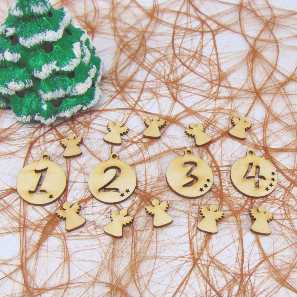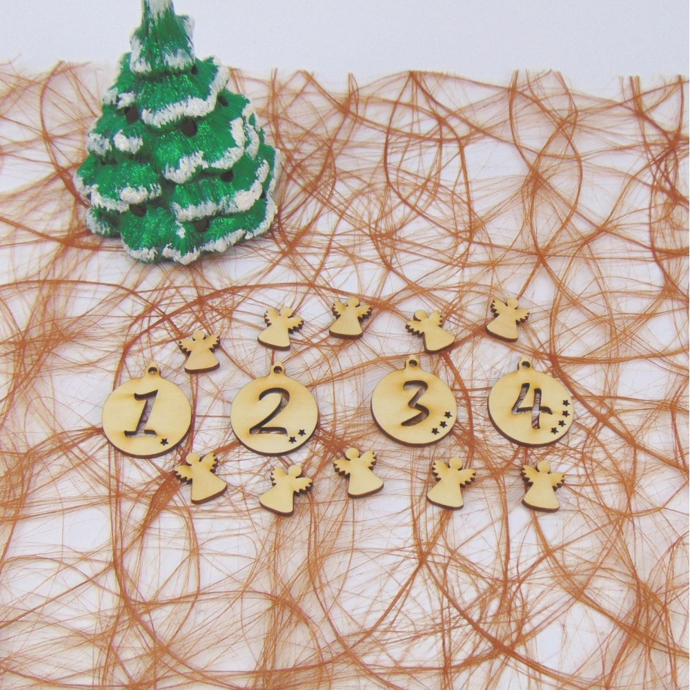 24 Ziffern in einer Höhe von 2cm aus 3mm starkem Birkenholz.Die Zahlen 1-24 eignen sich hervorragend..
