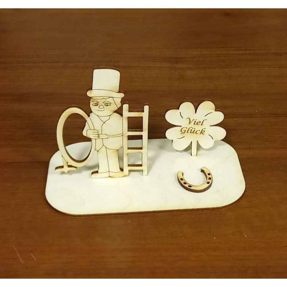 Holzfigur Schornsteinfeger aus 3 mm Furnierholz, Höhe 60 mm, Breite 30 mm, Musterung einseitig.Mit e..